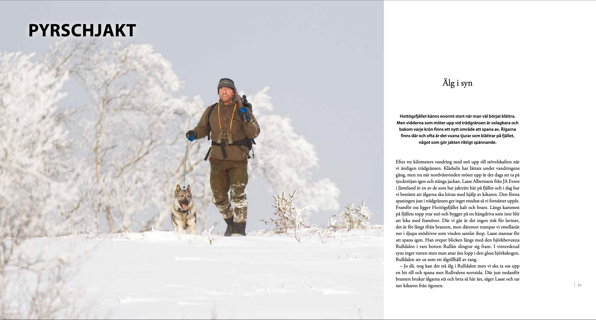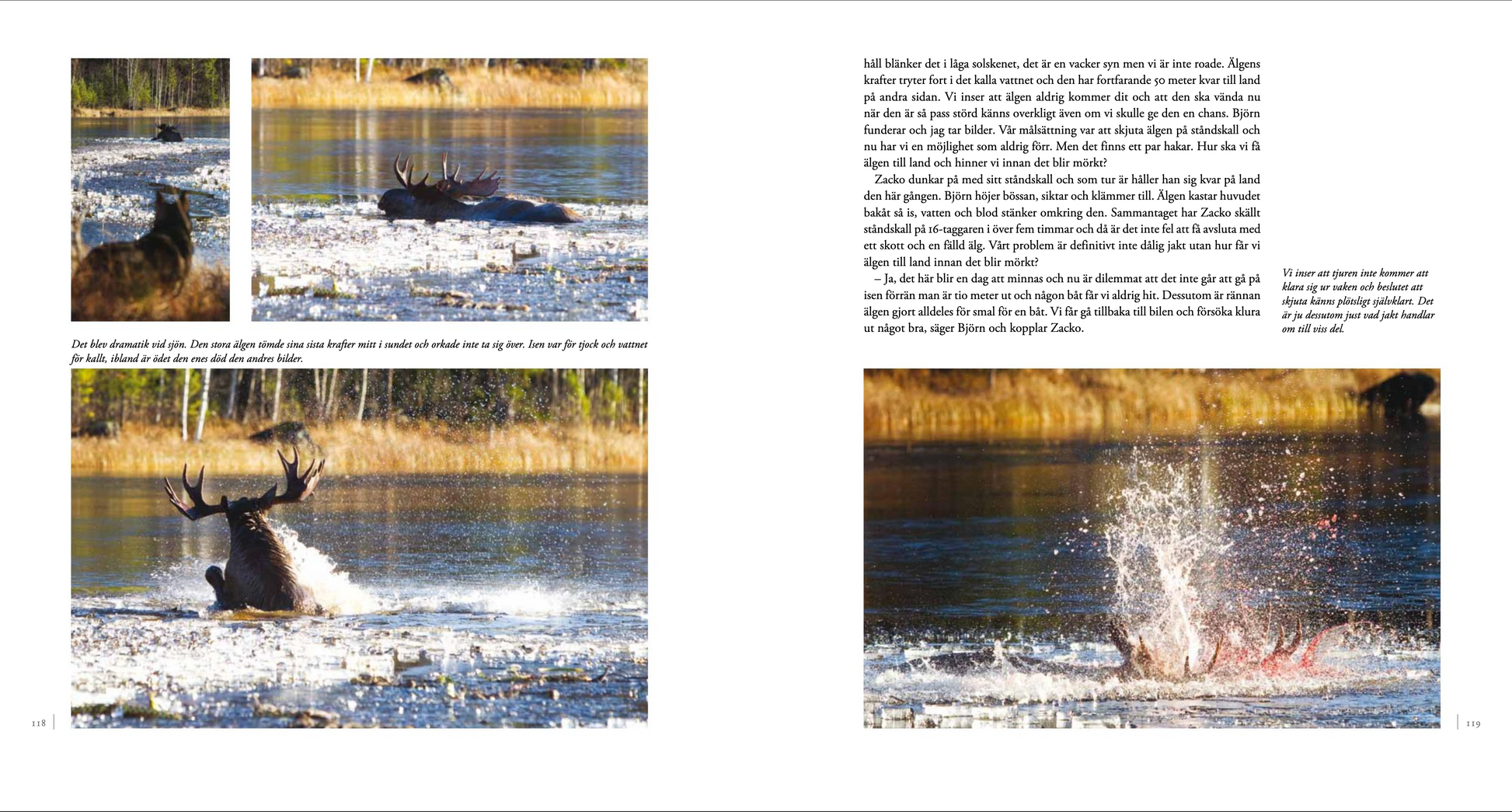 Ett 40-tal personer kommer till tals i boken och alla har något att berätta och delge. Kända personer såsom Älghundklubbens ordförande Lennart Holmsten och älglockaren Gunnar Sundh har många tips som tillsammans med de andra bidrar till att göra boken läsvärd och lärorik för alla älgjägare. Allt detta illustreras med mängder av färgbilder tagna under brinnande jakter runt om i landet.