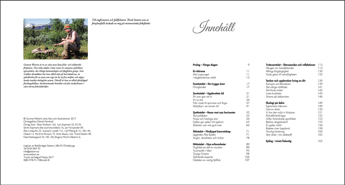 Den kände flugfiskeprofilen Gunnar Westrin bjuder oss på en personligt präglad tidsresa genom sju decennier, med fiskeupplevelser som röd tråd. Det handlar om en livets dokumentation, skriven med den stil som är så omtyckt av Westrins trogna läsekrets.