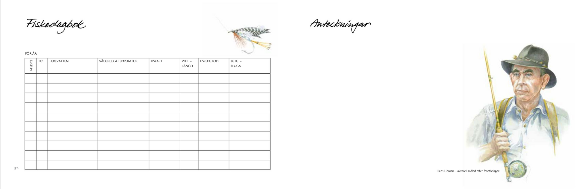 Dagboken kommer bli kär tillgång för sportfiskaren. En prydnad och upplevelse för fiskaren, men också för dennes gäster!