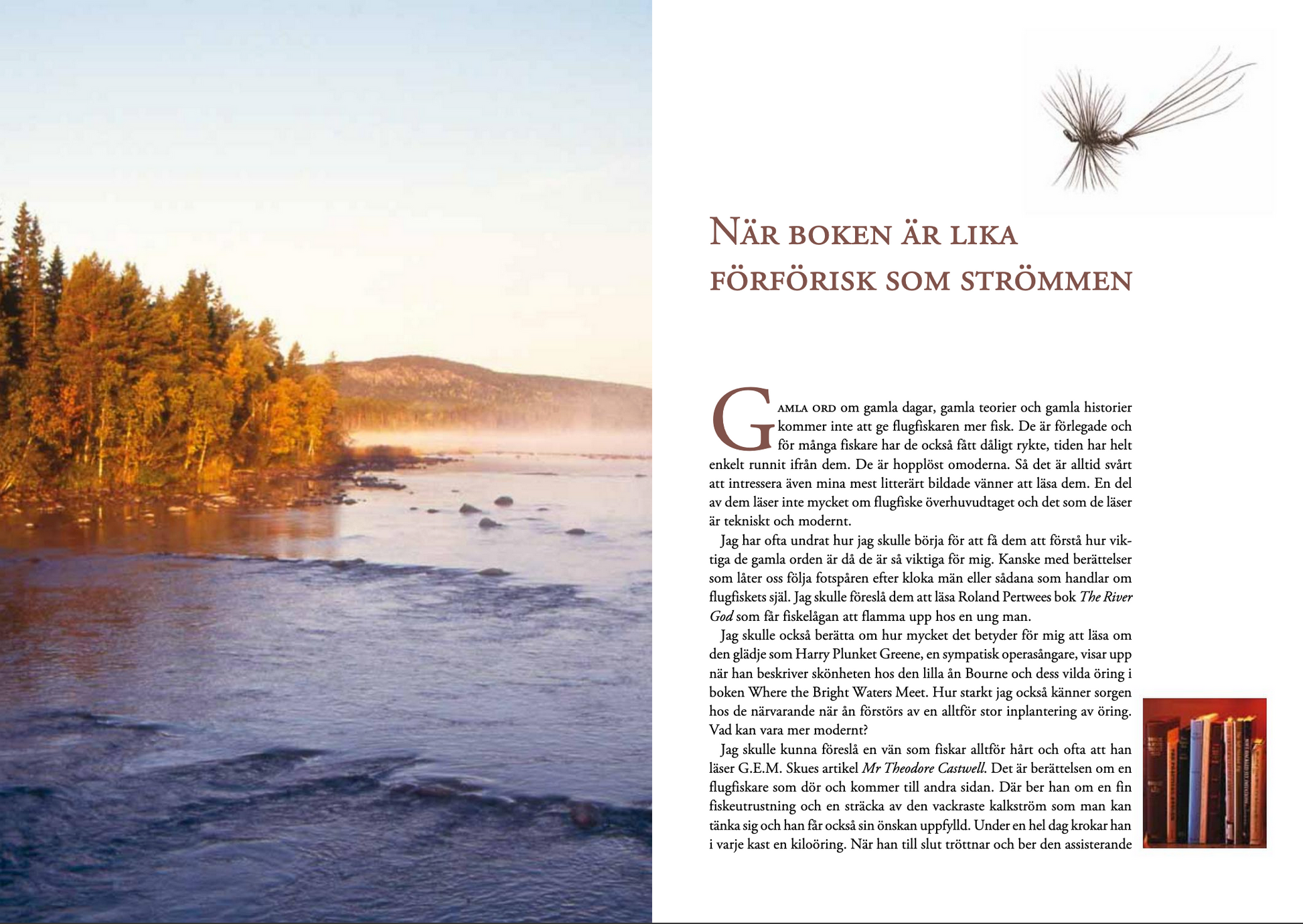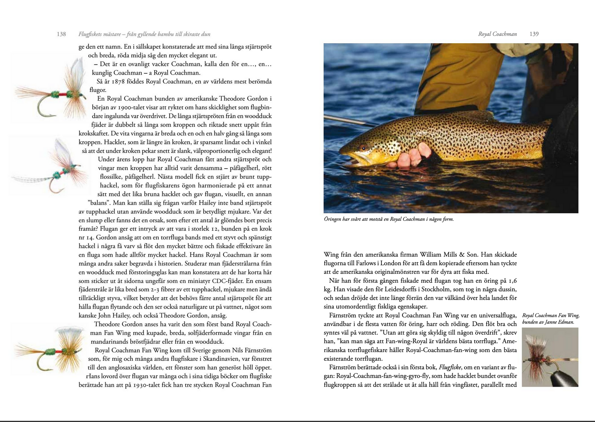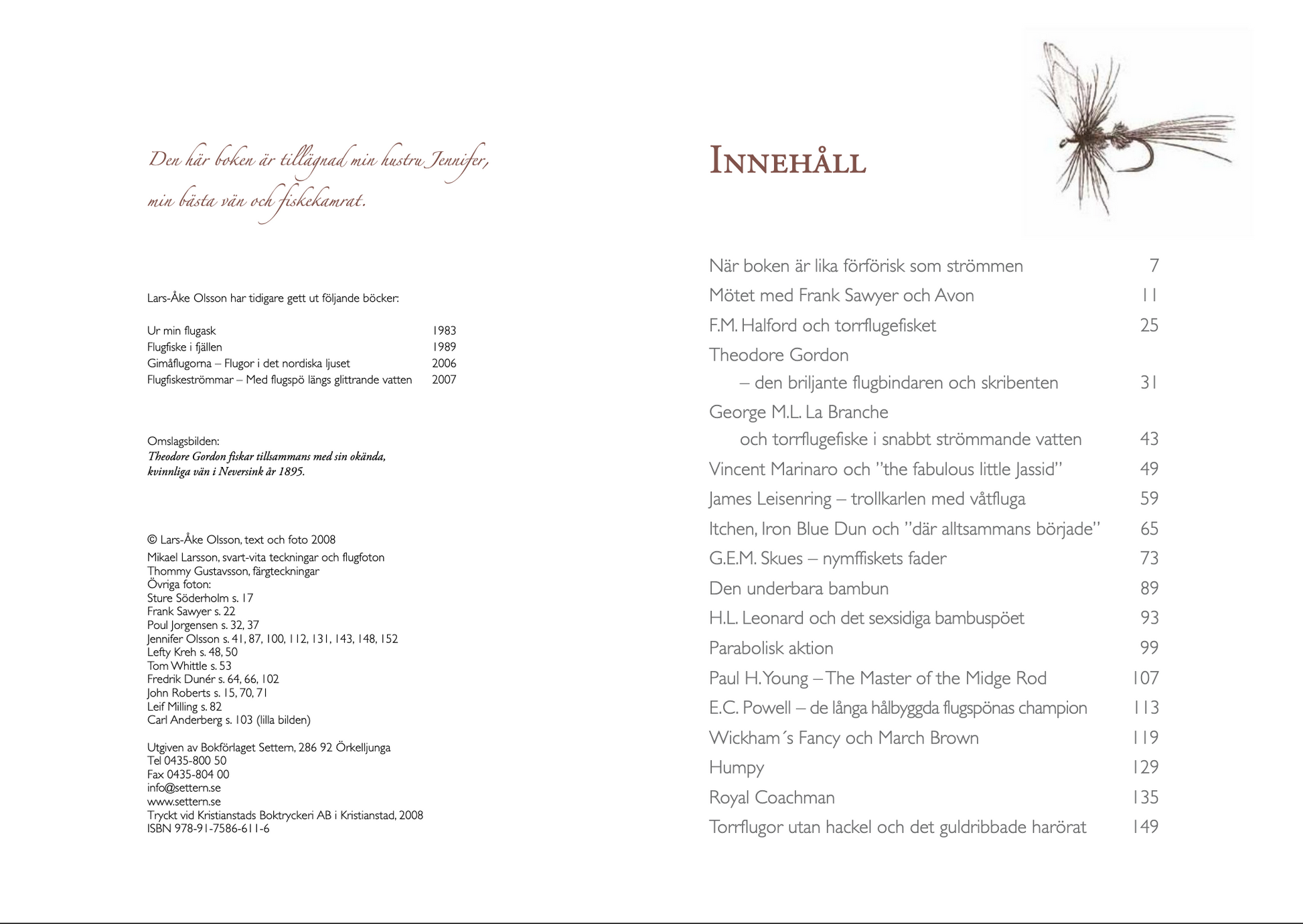 En spännande och i lika hög grad intressant resa i tid och rum med dem som kom att skapa vårt flugfiske. Få torde bättre och mer livfullt kunna berätta denna historia än just Lars-Åke Olsson med sin mer än femtioåriga erfarenhet från flugfisket i Sverige, men också i England och USA.