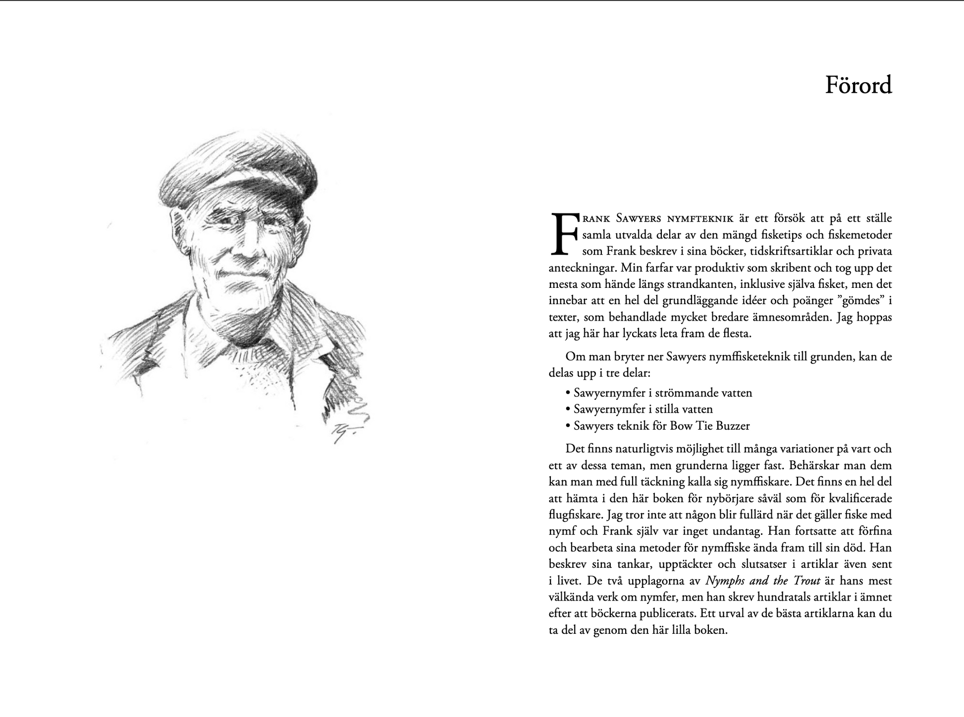 Den välkända engelske fiskevårdaren och flugfiskaren Frank Sawyer har fått stor betydelse för fisket med nymf. Här har Nick Sawyer sammanställt en del av farfaderns artiklar och personliga anteckningar som beskriver teknik, fiske och flugbindning.