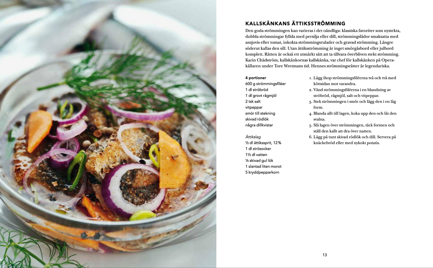 Samtliga recept i boken gör anspråk på att vara standard för hur rätten ska tillagas, för den rätta - K-märkta - smaken. Vår matkultur förändras ständigt. Men förvandlingar och nyheter behöver inte medföra att vi glömmer det gamla. Det traditionella och det nyskapande kan mycket väl existera sida vid sida. I